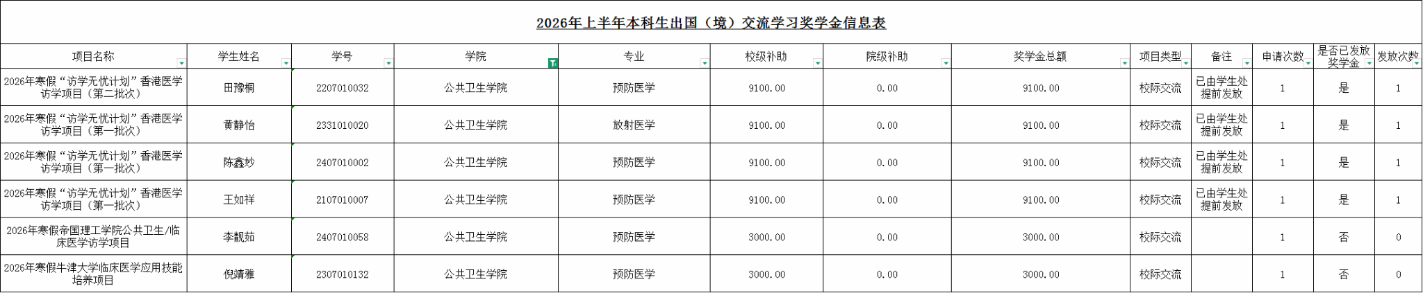 附件:皇冠娱乐城 2026年上半年本科生出国(境)交流学习资助拟发放名单